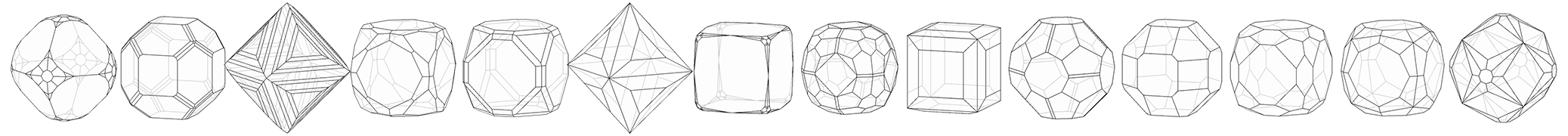 单形的文章我会努力拖延的!(什么)我现在有立方体、八面体、菱形十二面体、四六面体和三角三八面体这五种了,还差四角三八面体和六八面体两种——感觉都很难,拖也拖得更理直气壮。另外我也会再去继续努力寻找新的聚形的!